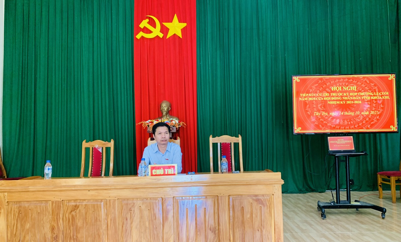 Sáng nay 14/10, tại hội trường UBND xã Tây Trà, đồng chí Hoàng Anh Ngọc - Tổ trưởng - tổ Đại biểu số 21, HĐND tỉnh khóa XIII, nhiệm kỳ 2021-2026, Bí thư Đảng ủy xã Trà Bồng đã có buổi tiếp xúc cử tri trước kỳ họp thường lệ cuối năm 2025 với cử tri xã Tây Trà.